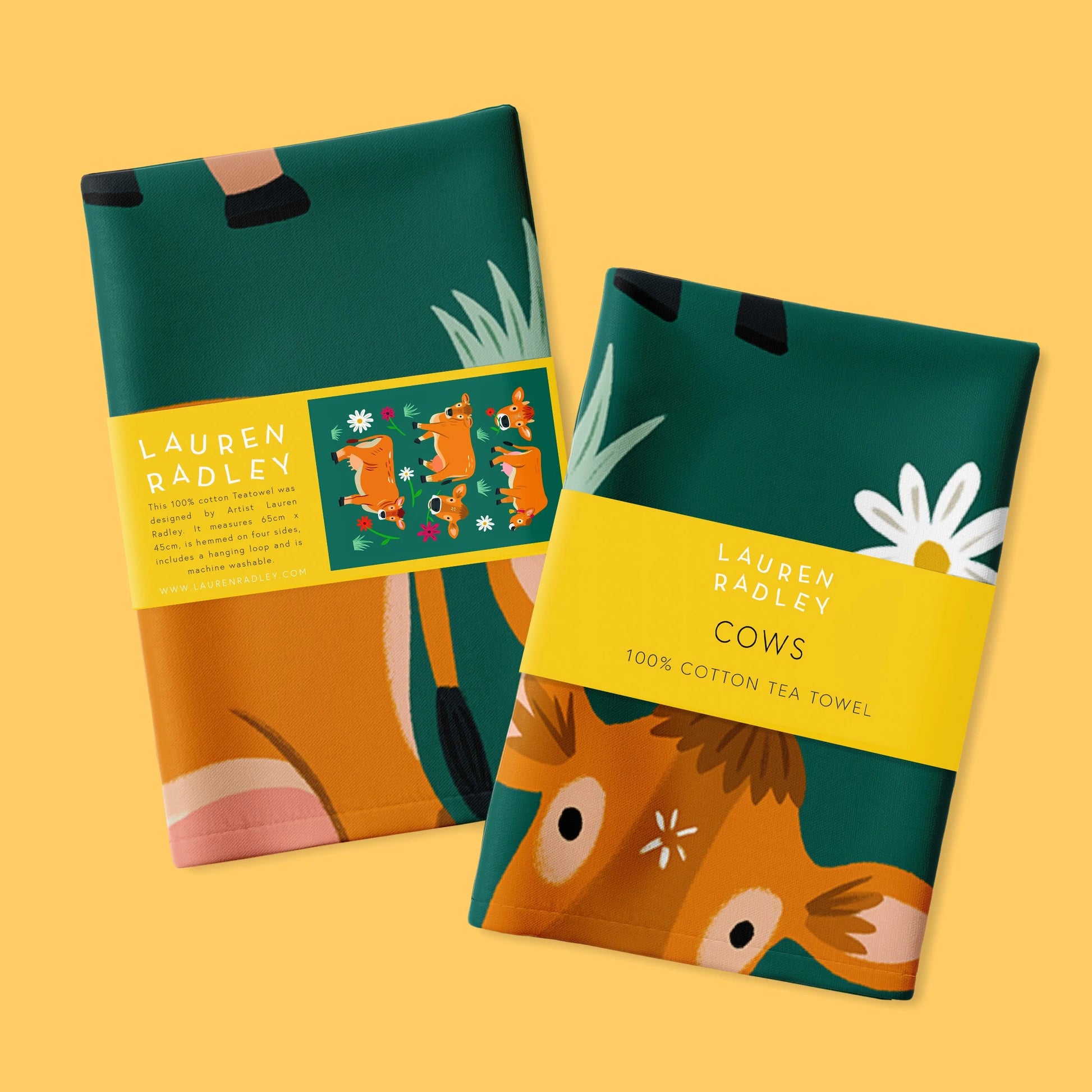 This 100% cotton tea towel features an original cows design by Lauren Radley.