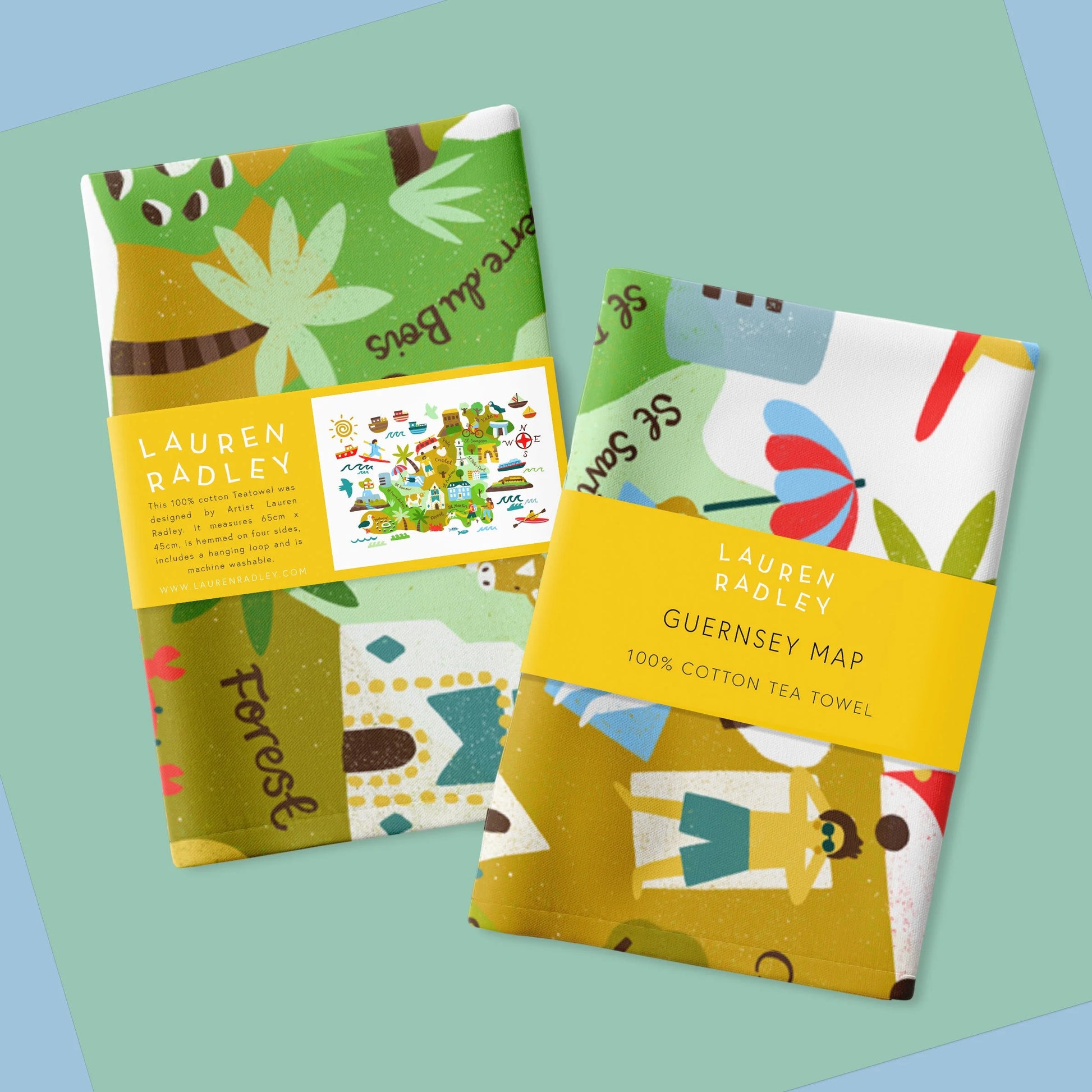 This original design by Lauren Radley a best seller from her range of gorgeous, unique hand illustrated maps. This cotton tea towel features a fun, playful map of the Island of Guernsey, and would make the perfect gift or souvenir, and is the perfect addition to brighten up any kitchen.