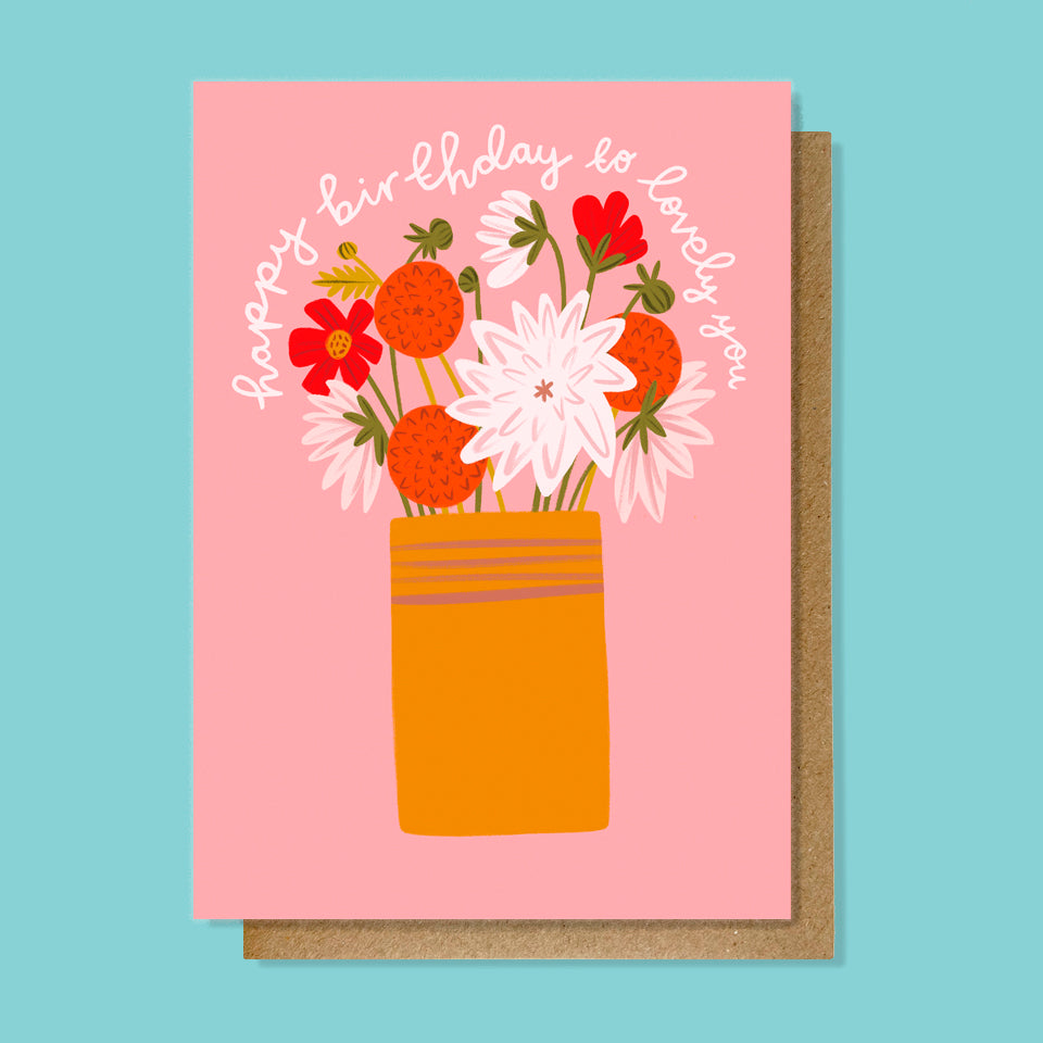 Happy Birthday Flowers Card - Send your birthday wishes and love with this floral card. Featuring Lauren Radley’s illustration of a vase of flowers, this colourful birthday card would be perfect for mums, grans, or friends.