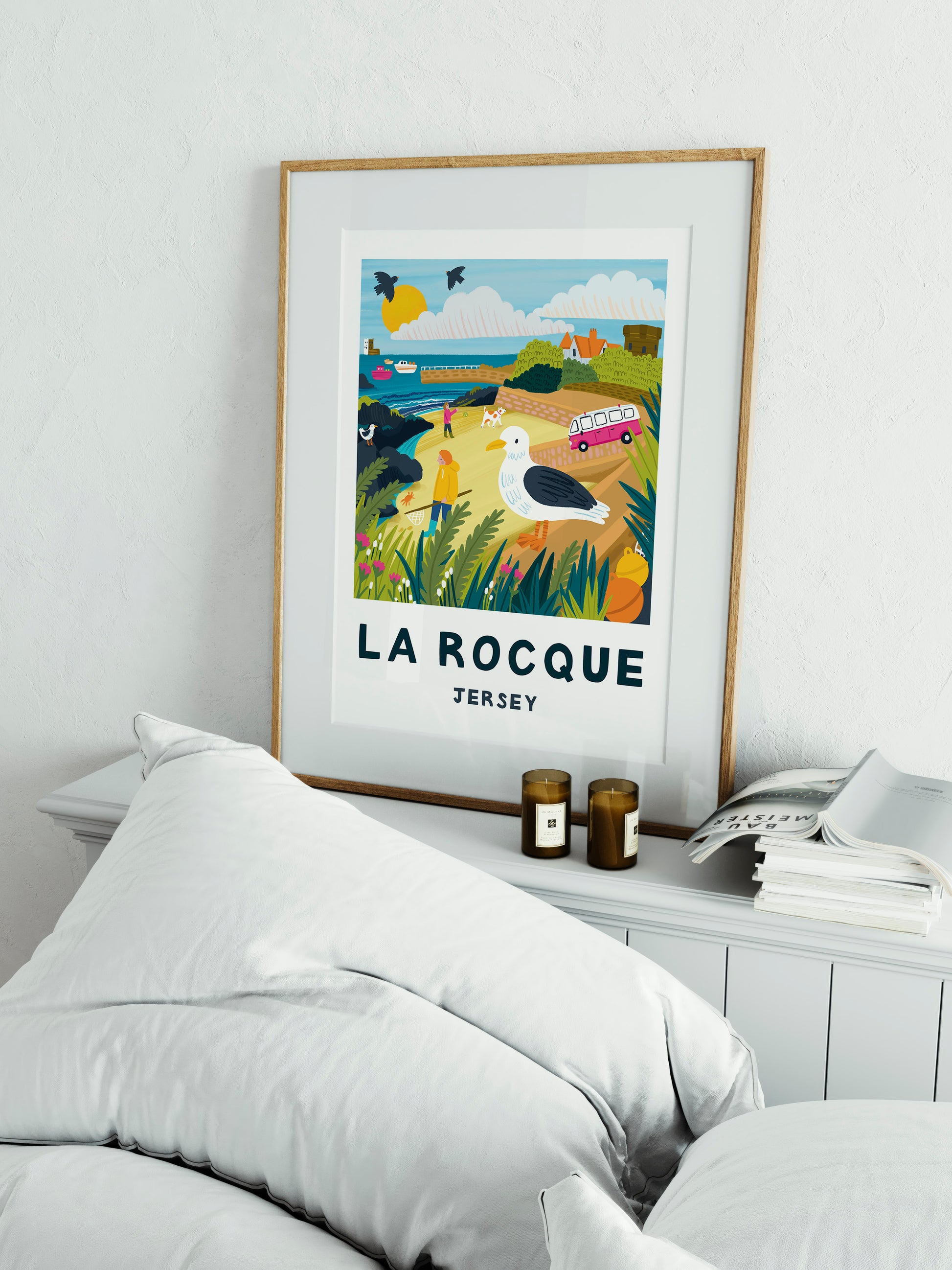 Celebrate La Rocque's timeless beauty with this enchanting Lauren Radley print showcasing Jersey's most charming harbour. Filled with playful details it's a vibrant keepsake for anyone who loves this coastal haven.