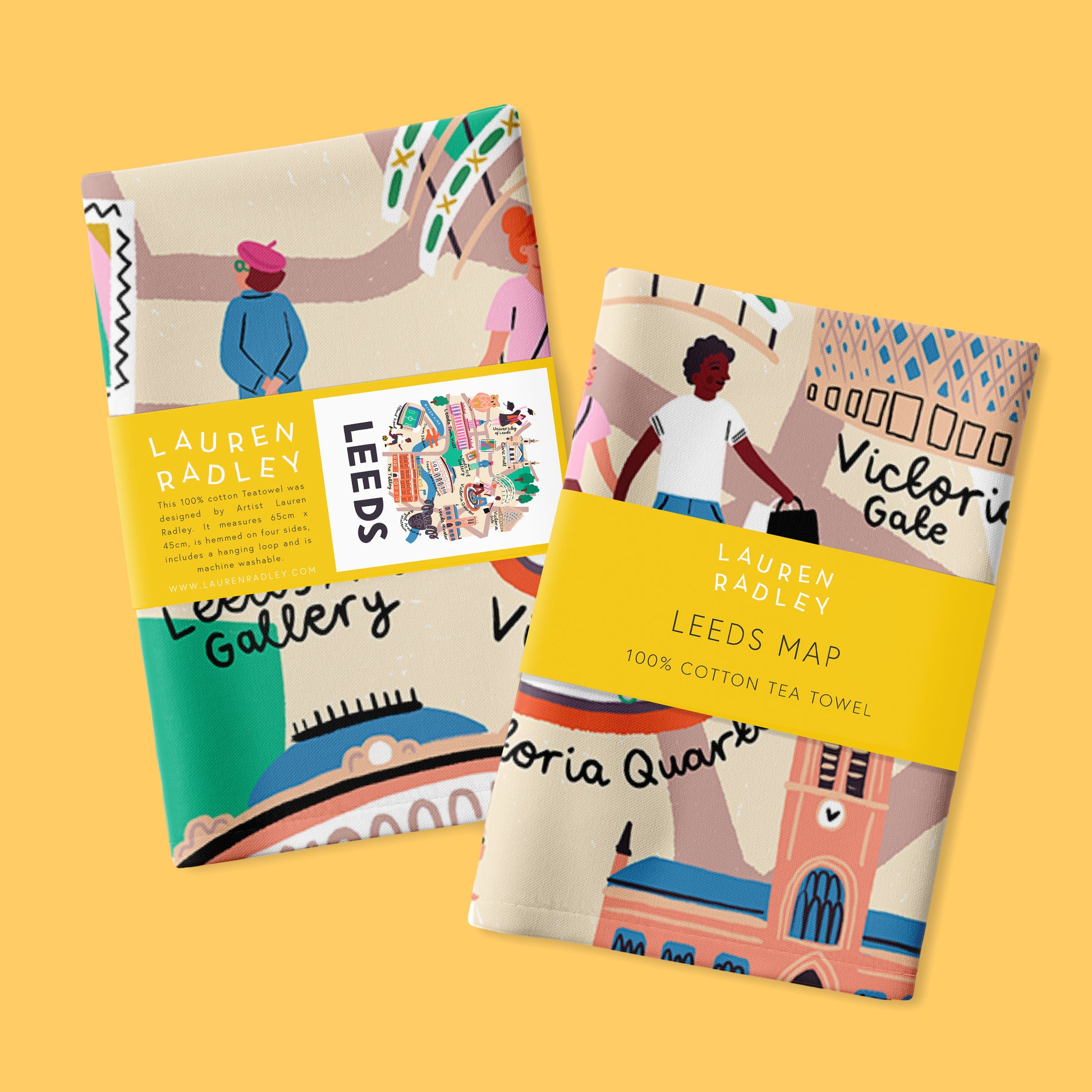 Bring Leeds charm to your kitchen with this detailed illustrated city map tea towel by Lauren Radley.