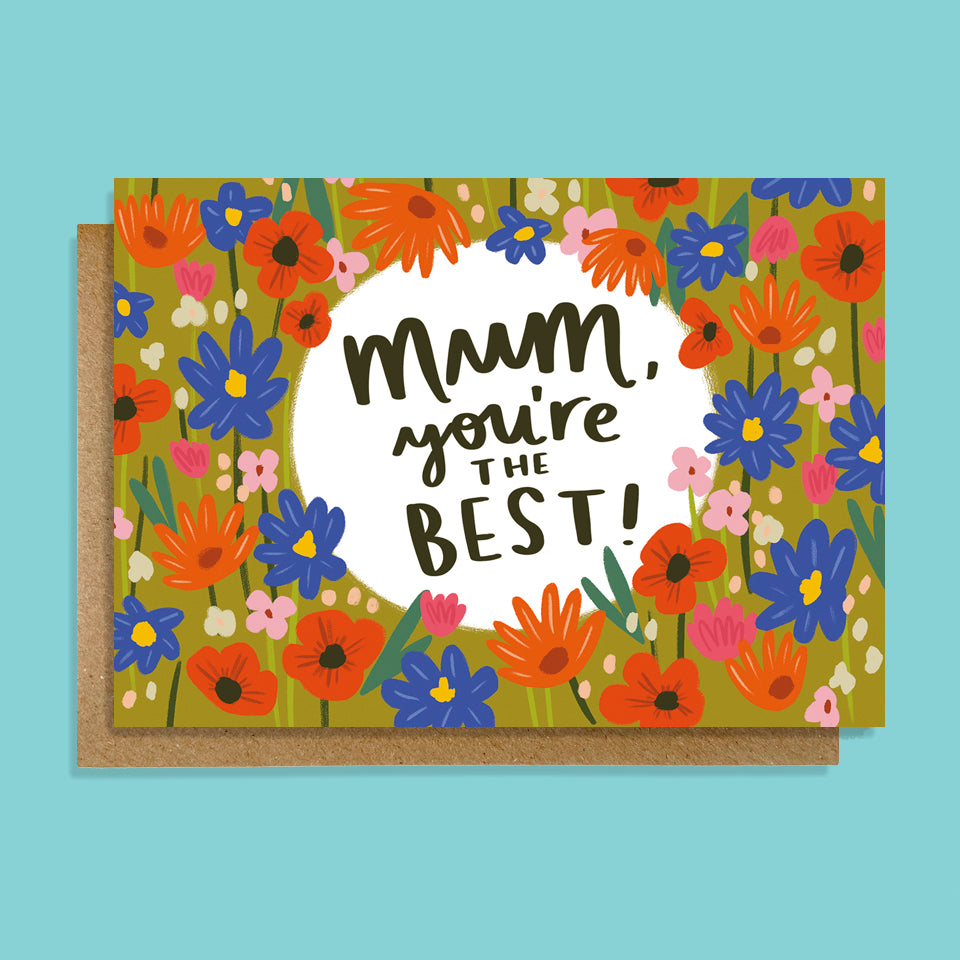 Let your Mum know that you think she's the best with this gorgeously hand illustrated greetings card of a meadow full of wildflowers.