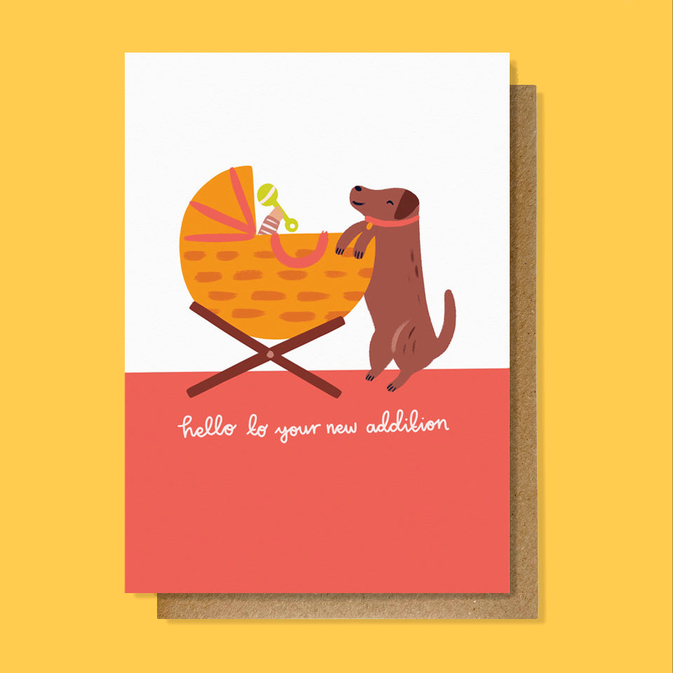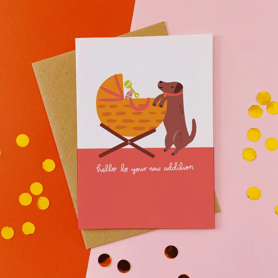 New Baby Best Friend card - Featuring Lauren Radley’s illustration of the new arrival meeting their new best friend!