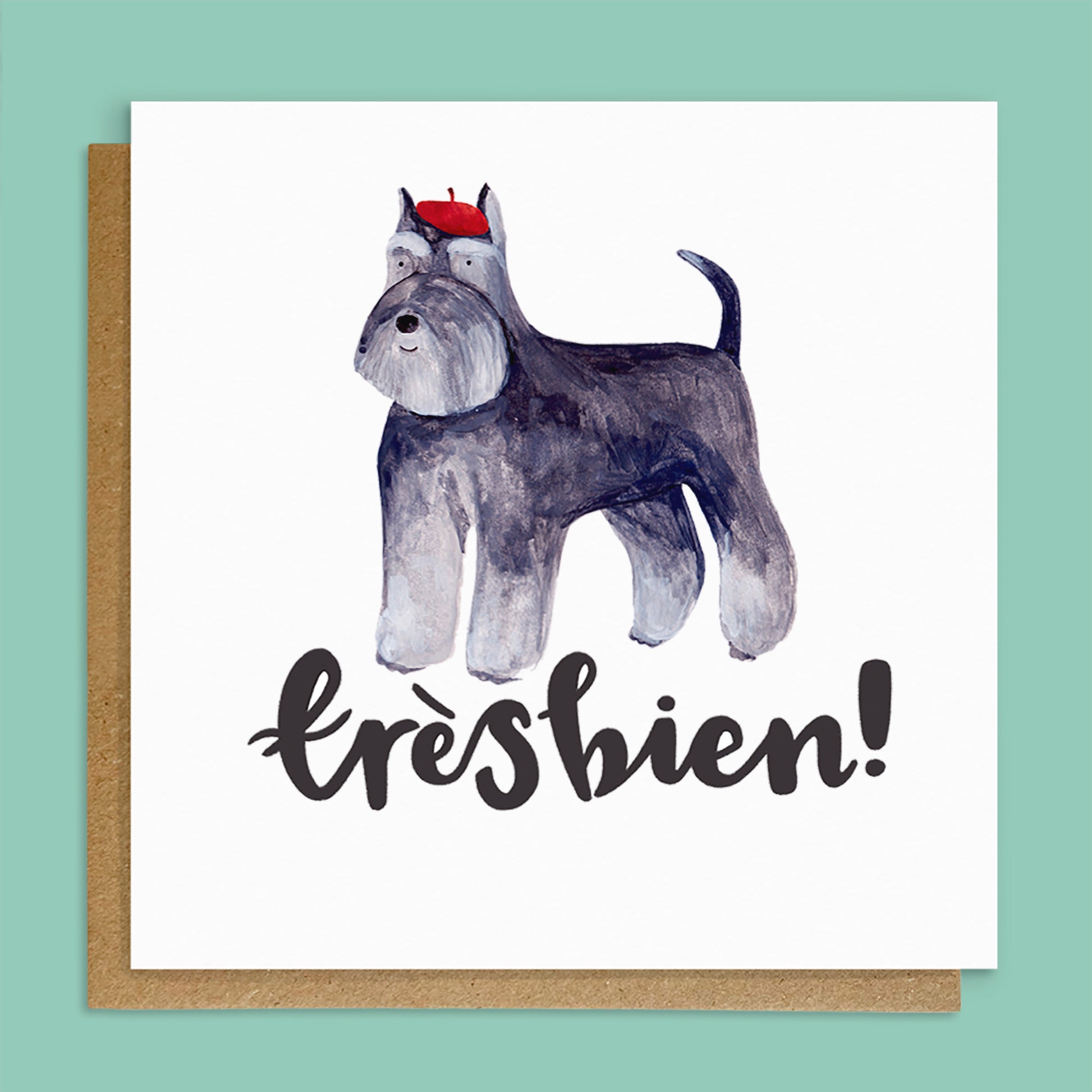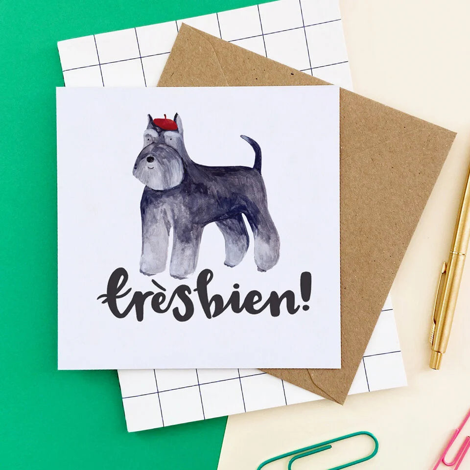 Well Done Scottie Dog Card - Say a cheeky well done to a dog loving friend with this hand painted card by Lauren Radley, featuring her own unique illustration of a suave Scottie dog and beautiful brush lettering.