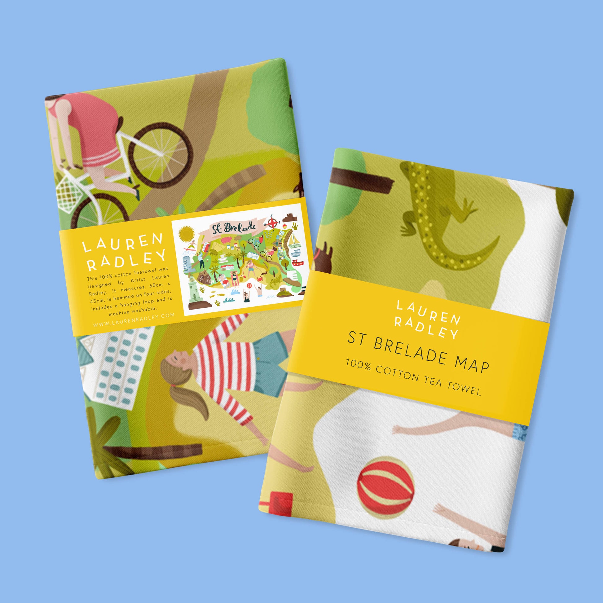 This original design by Lauren Radley is one from her range of gorgeous, unique hand illustrated maps. This cotton tea towel features a fun map of the Parish of St Brelade in Jersey, and shows landmarks and fun activities to do in this sunny, coastal parish.