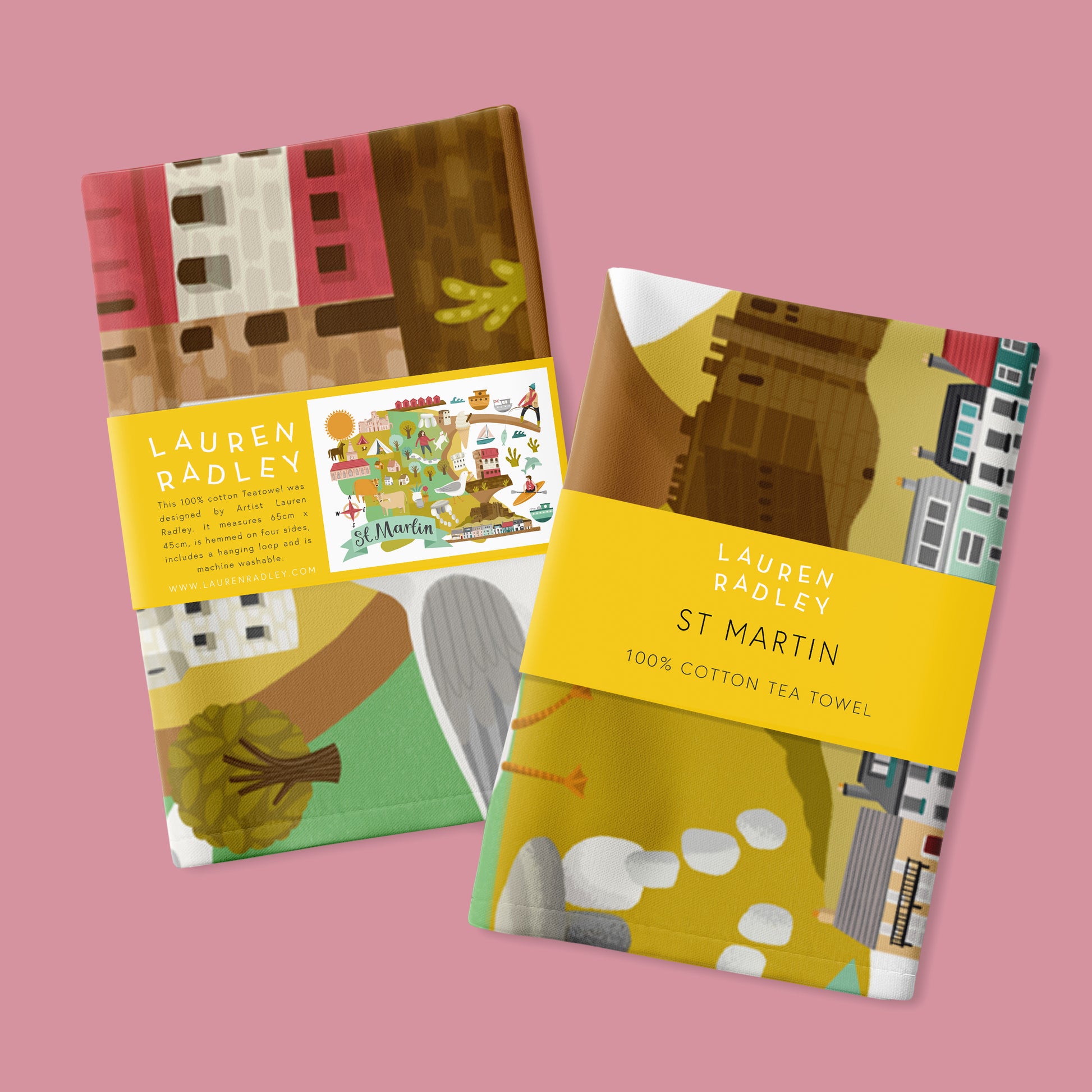 Our tea towels are folded and wrapped in a card belly band.