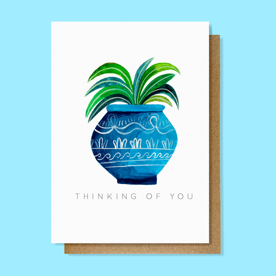 Thinking of You Cactus Card - send someone your thoughts and well wishes with this cactus sympathy card. Beautifully hand painted by Lauren Radley, this card is the ideal way to send a message of love or condolence to a friend.