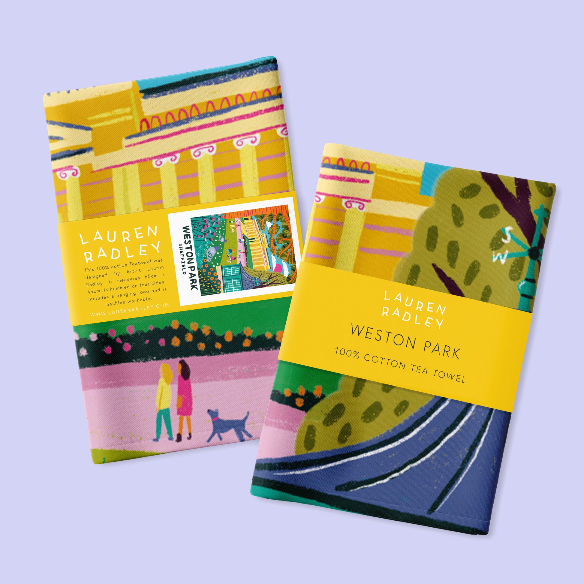 This 100% cotton tea towel features an illustrated scene of Weston Park museum and gardens, Sheffield. Hand illustrated by Lauren Radley